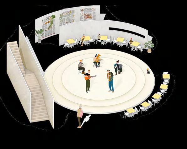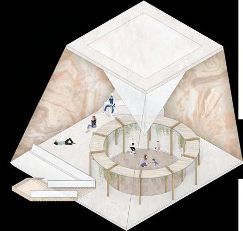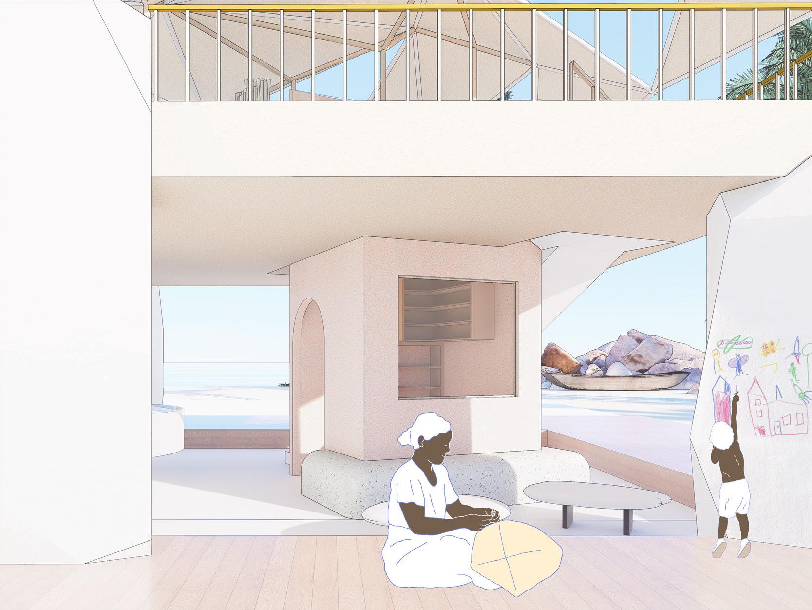 In this project, I hope to improve the living environment of the e o people with limited water resources by introducing the image of the reef as a protectve and safe space to build a water recycling toilet workshop that combines the space for various labour needs. Here people will not only be able to carry out water-demanding actvites and dispose of excreta safely and cleanly, but also use them to generate new energy for sustainable development.