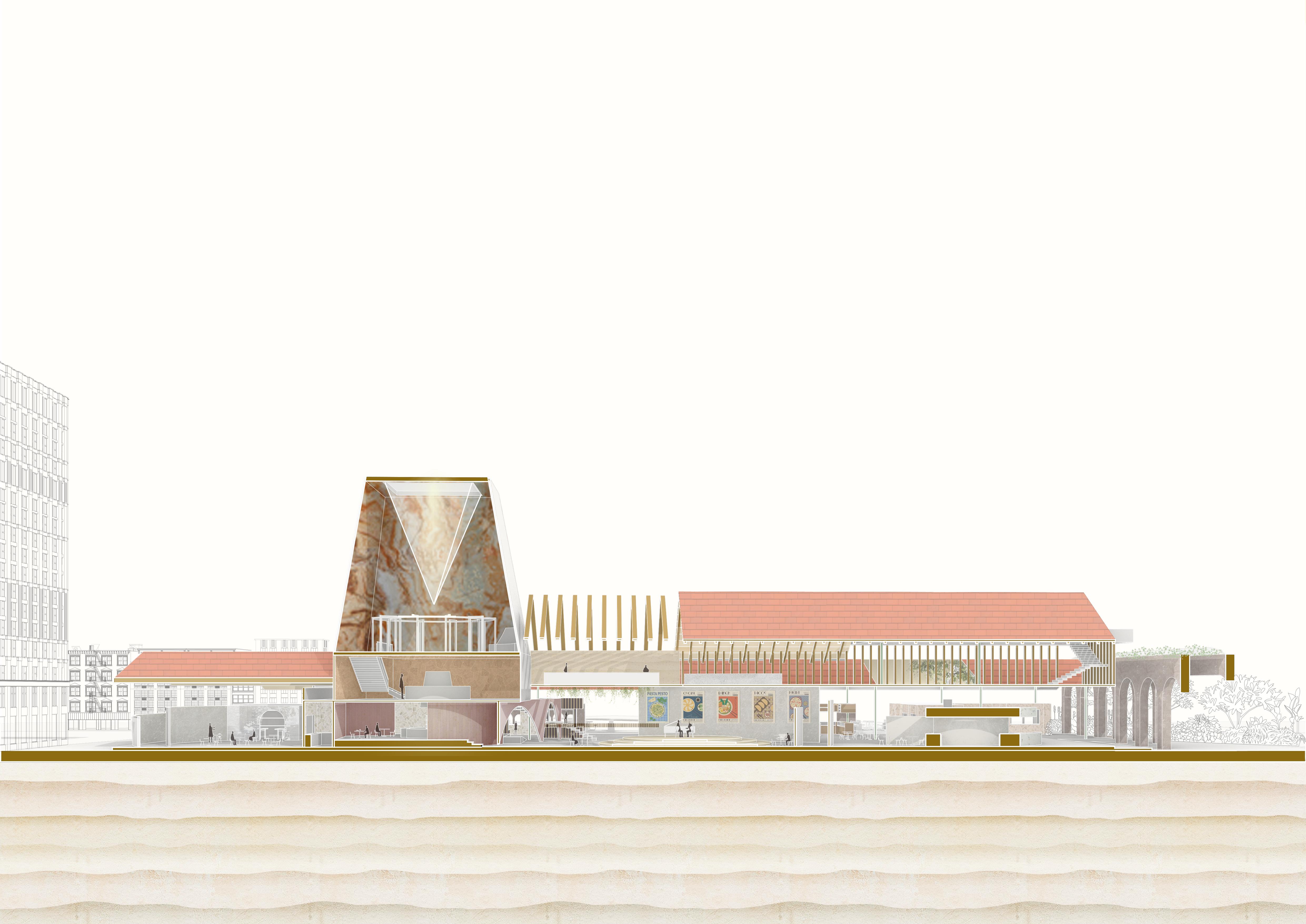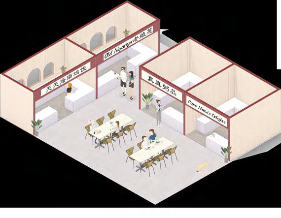 This project upgrades the old hawker centre, re-planning the layout of the stalls and adjusting the business modules to promote its integration with the needs of the modern society, and to provide a better environment for food trading and a space for cultural exchanges.