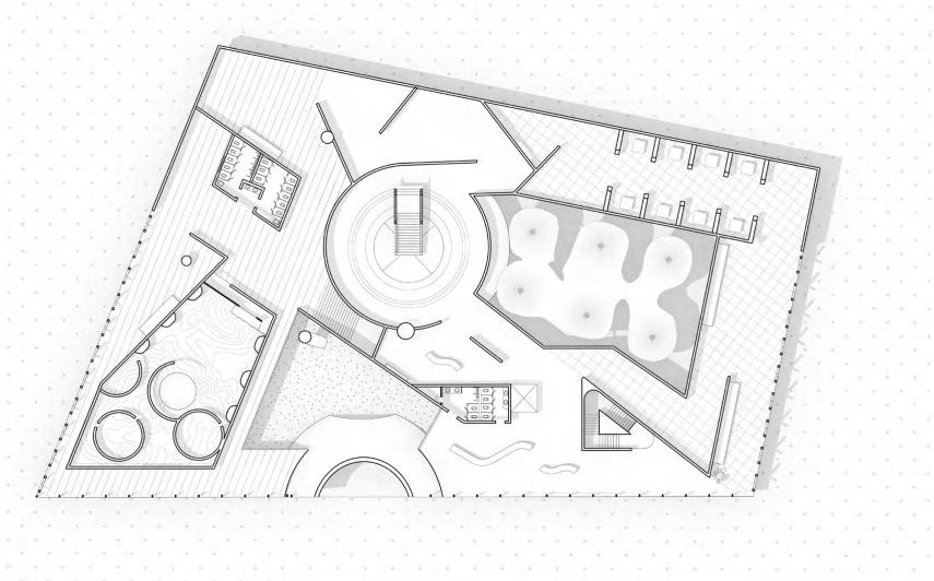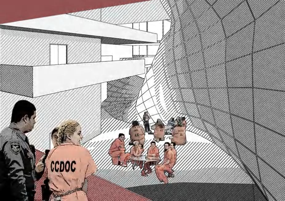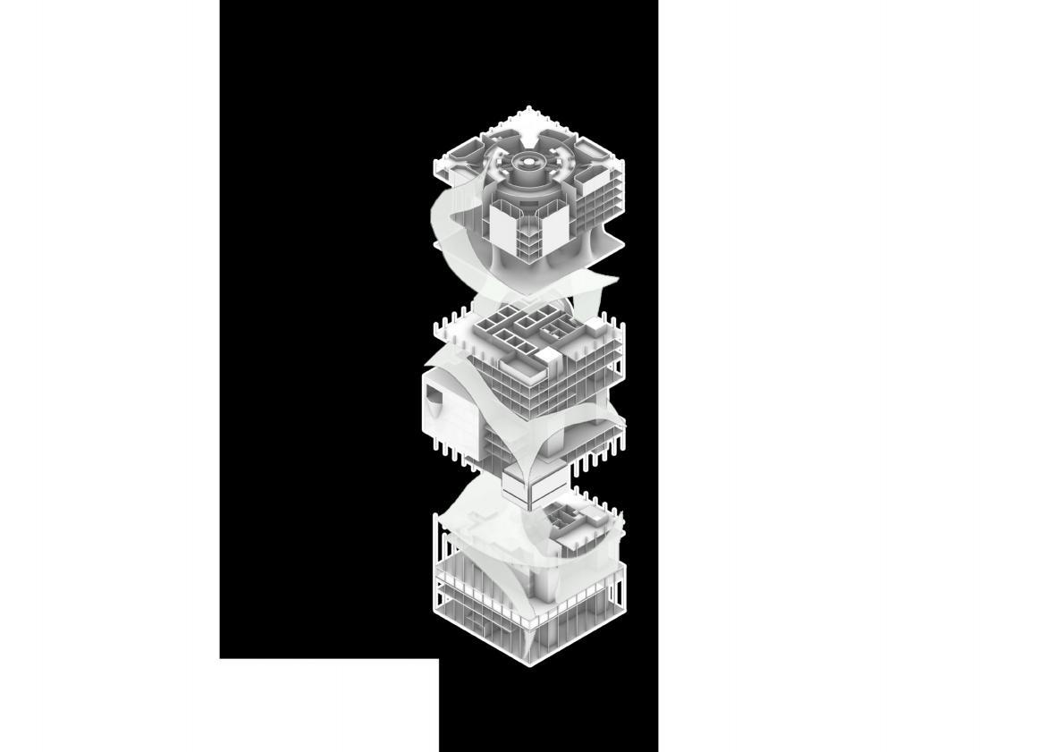 The third section, at the top of the building, ers the highest security and isolation. Its primary function is to house high-security inmates, providing essential spaces for living and recreation. The experience of living above the city is designed to evoke in inmates a longing to return to the ground and reintegrate into society.