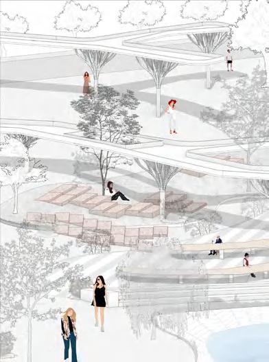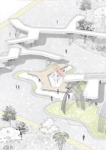 This is a landscape course design for senior year. In this project, we used Rhino and Grasshopper to simulate the image of a tree to generate shaped columns, to generate a landscape corridor bridge installaton that adapts to the elevaton di erence of the site, and to create the feeling of a wooded area.