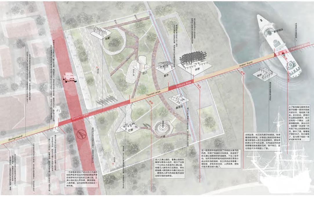 This is an urban design project in the junior year. In this project, by re-planning the paths through the city park and placing architectural installatons related to uhan's culture, the project aims to revive cit ens' memories of uhan, integrate traditonal culture into their daily lives, and inspire new vitality in Wuhan's waterfront parks.