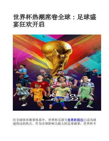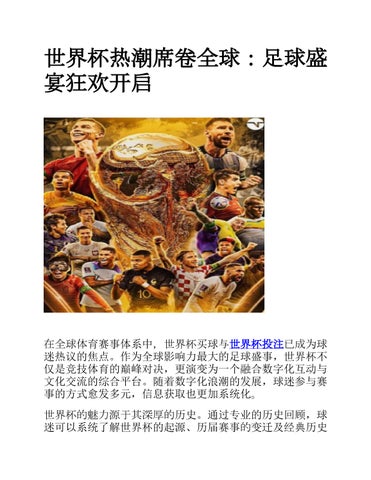 世界杯投注 - 世界杯作为全球最具影响力的体育赛事之一,不仅汇聚了世界顶级足球力量,也承载着深厚的文化、历史与情感价值。随着数字化和网络传播的发展,球迷获取世界杯信息的方式变得更加多元和便捷,从赛制变动、历史回顾到未来赛事规划,相关内容不断丰富和更新。 世界杯逐渐发展为一个融合竞技、交流与互动讨论的综合平台,使全球不同地区和文化背景的球迷都能深度参与。 随着2026年世界杯临近,赛事关注度与讨论热度不断升温,全球球迷的互动与参与将达到新的高峰,同时赛事背后的文化与社交影响力也将持续扩展,彰显世界杯在体育和社会领域的独特地位。