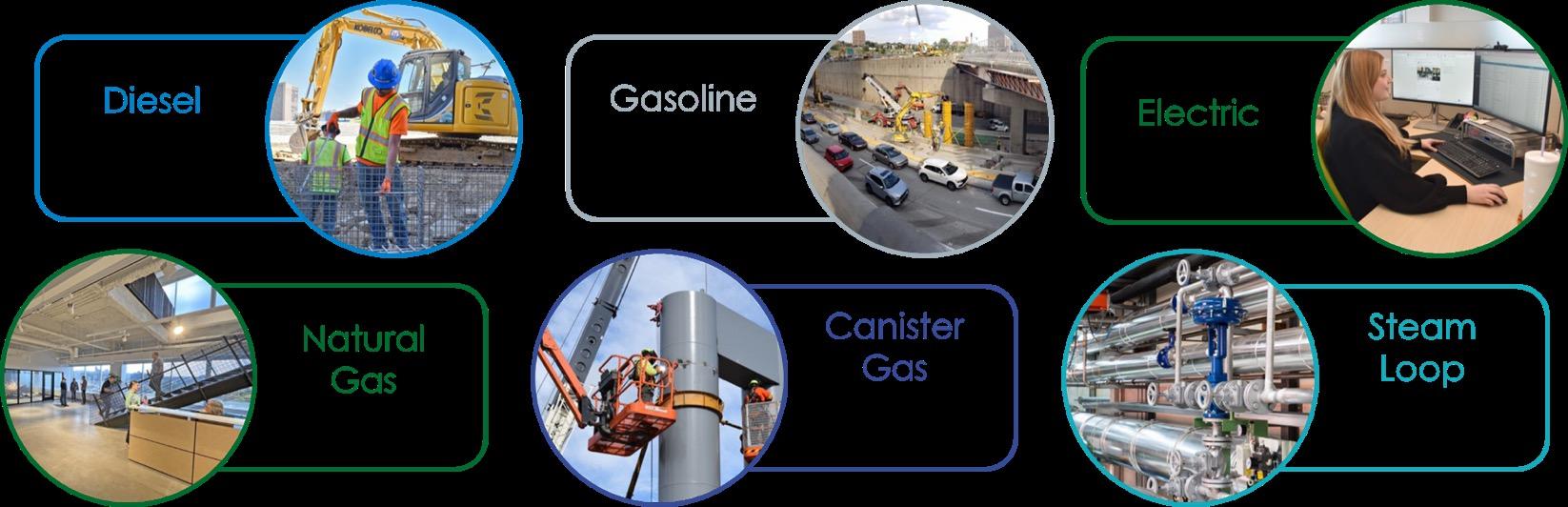 • Scope 1 includes on-road and off-road diesel and gasoline, natural gas, propane and acetylene.