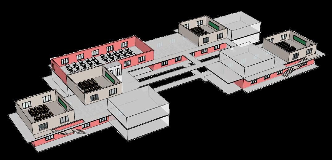 Each studio unit has its lecture hall in a close proximity - either connected through a private staircase from studio unit to lecture hall or located adjacent to it.