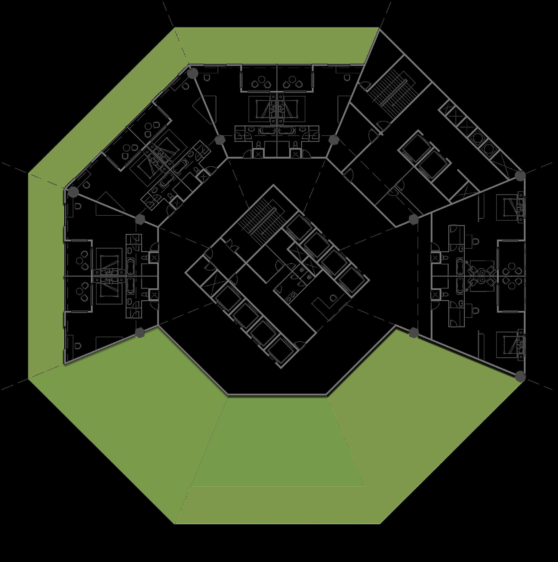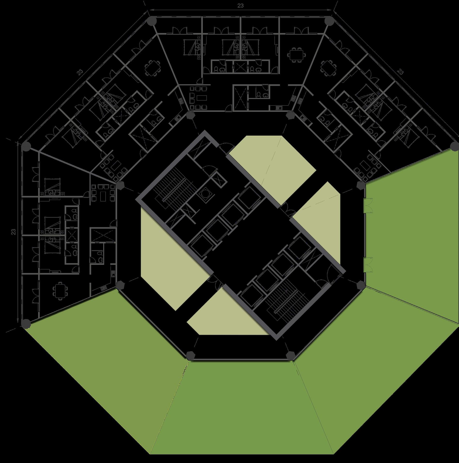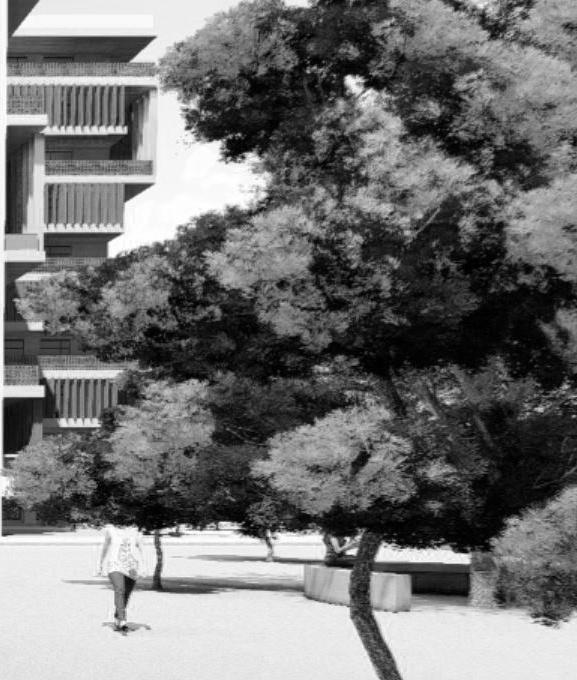 Building pulled out of the maximum ground coverage that it can occupy on the site. Dividing the building area into residential and non-residential zone.