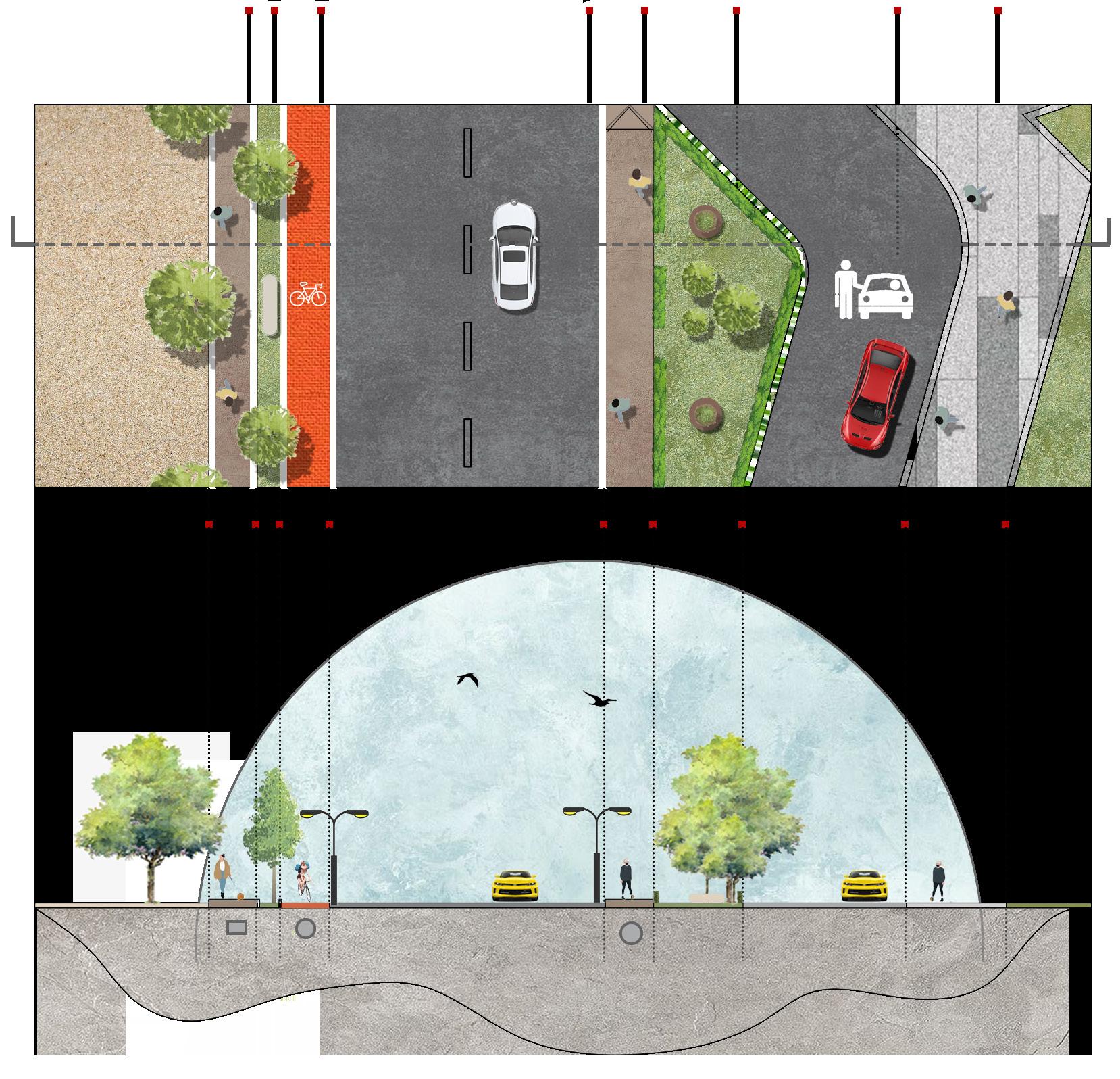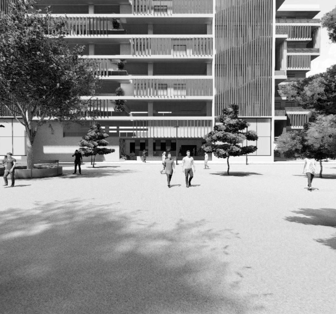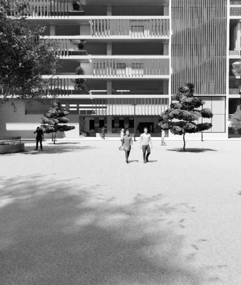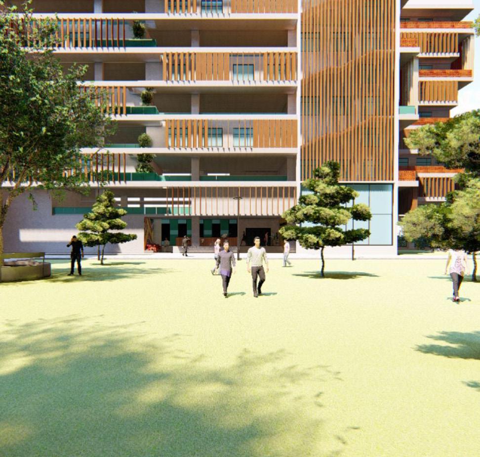 The site is surrounded by uninterrupted pedestrian and cycle movement. Thus it makes a pedestrian friendly neighbourhood. Both open and shaded pathways are provided to promote walkability inside the site. Ramps are provided, thereby, making it an universal design. Street furnitures such as bollards, lamp post, seating area along the pathway, trees are taken into account during the design stage.