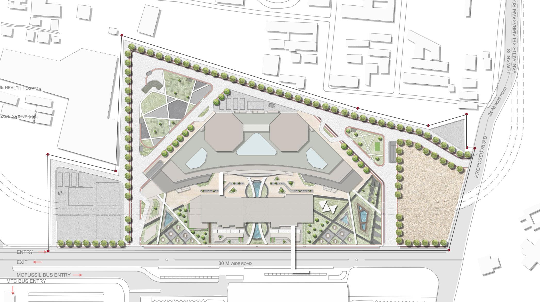 The aim of this project is to develop a Transit Oriented Development which supports a chain of seamless connectivity from the sub Urban to the Chennai city with sustainable mobility options which focuses on last mile connectivity. Also, to develop a Multi modal transit station that will encourage sustainable mobility, imageability, maintainability, walkability by connecting different land uses leading to a harmonious environment.