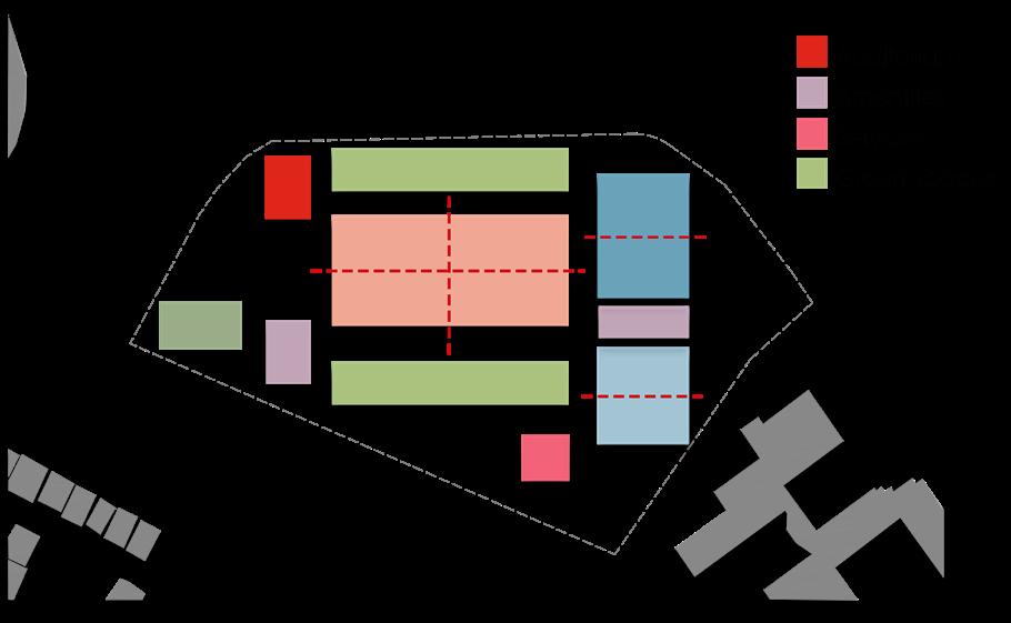 The residential zone is divided into hostel blocks for students and staff quarters. The non residential zone is further classified into academic area, admin area, recreational area and parking area.