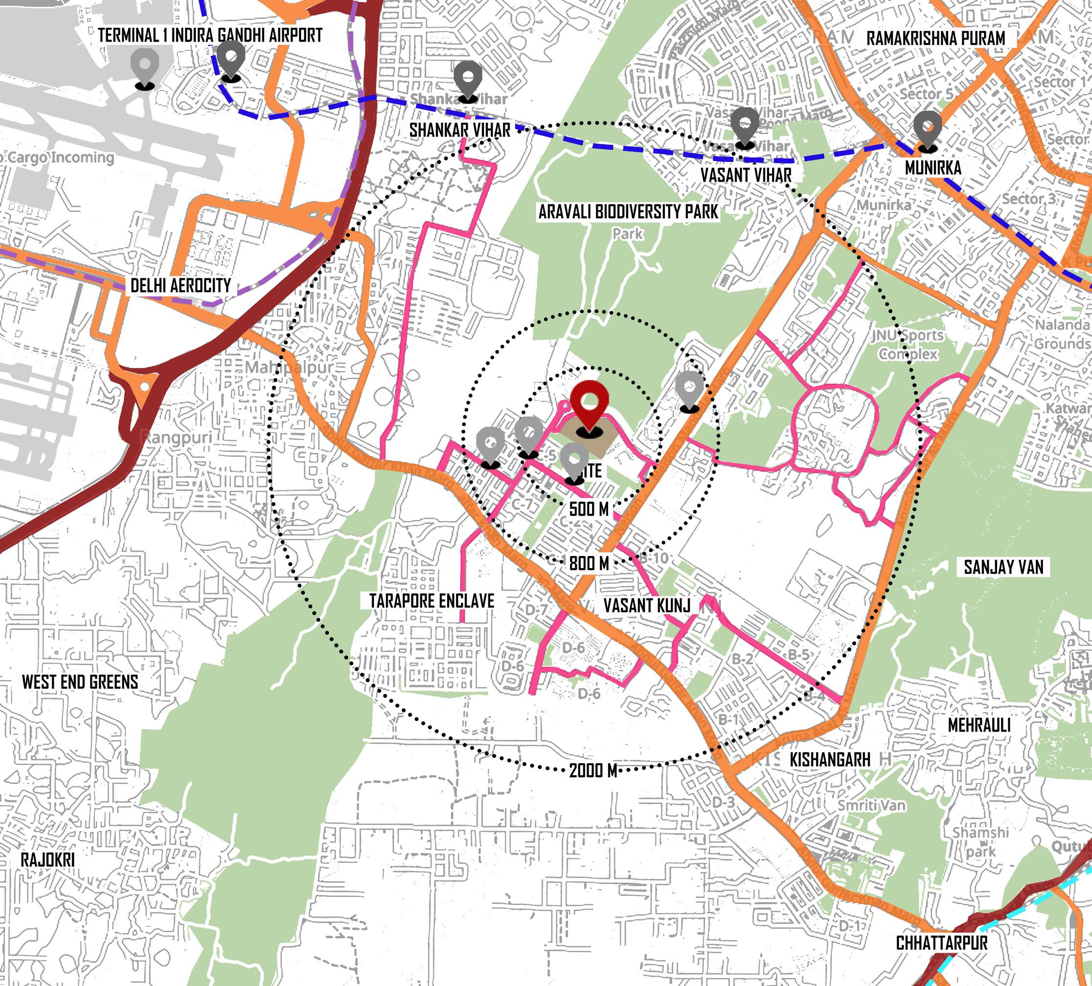 The road network, connectivity through different modes of transport, amenities / facilities in a closer proximity, land use type, blue green map of the area were studied in detail for the feasibility of the site & its location.