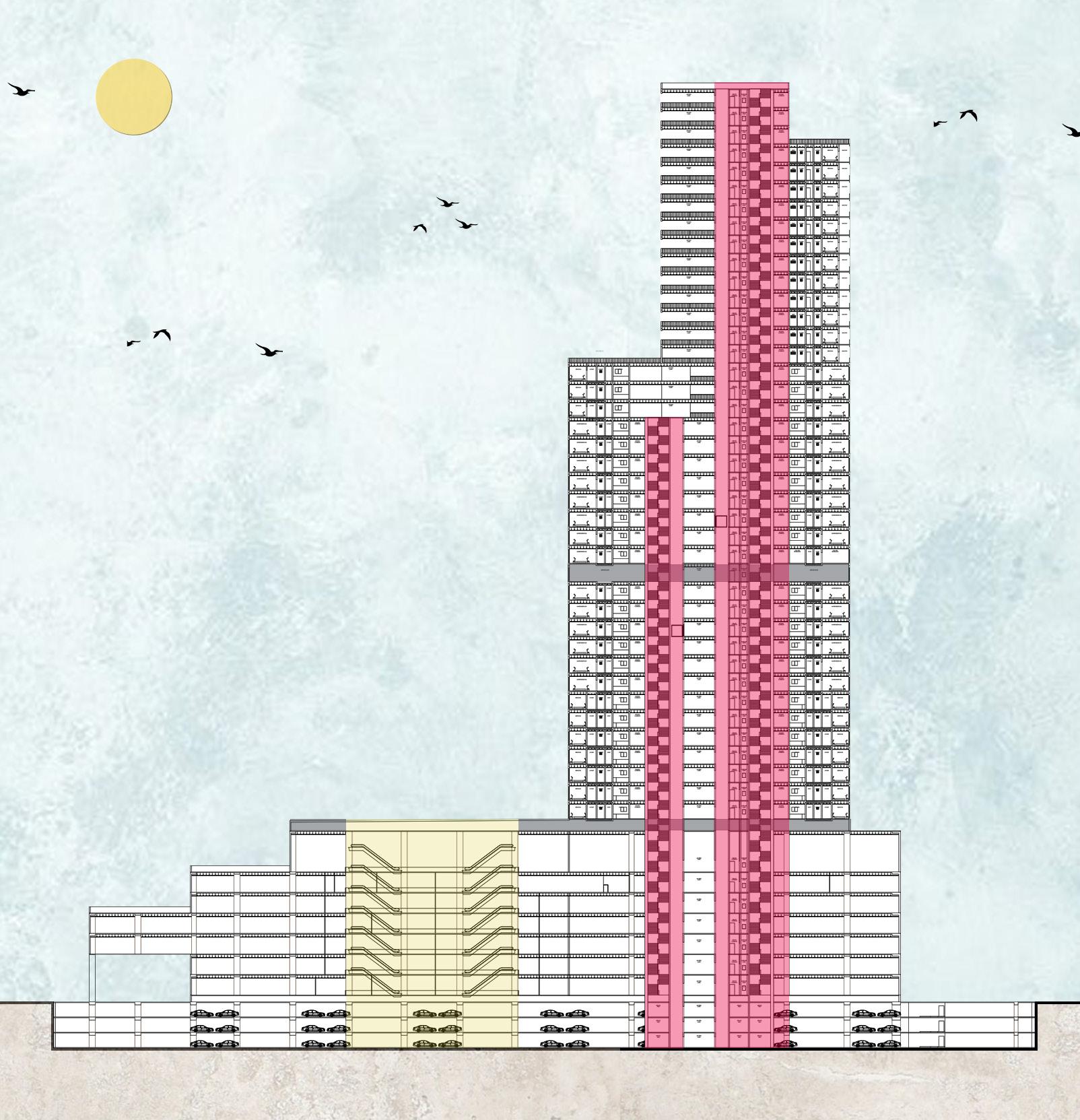 Residential block No. of car parking - 40 No. of bike parking - 107