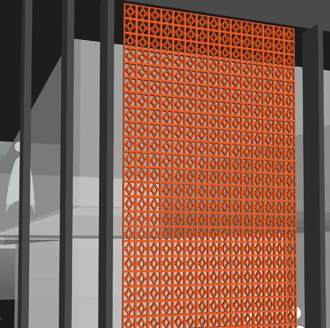 CNC Panel Shading Device Above 6" x 4" Powder Coated Steel Rectangular Hollow Box Section of 5mm Thickness 10'8 1/2" Shading Device