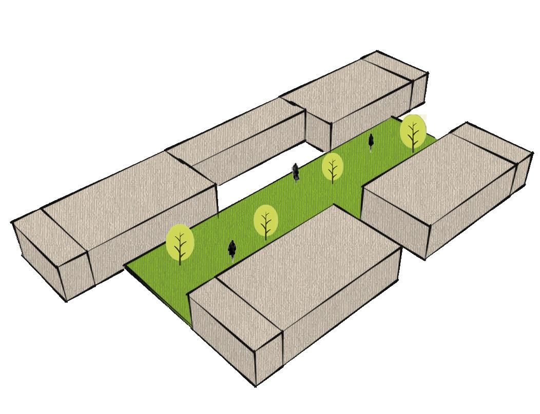 Based on the climatic study, building blocks are positioned in such a way that its longer side faces N-S direction.