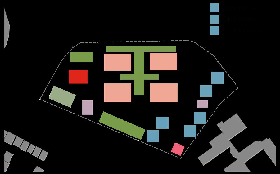 The academic blocks are located centrally to ensure closer proximity to all other areas & creating a walkable environmnent