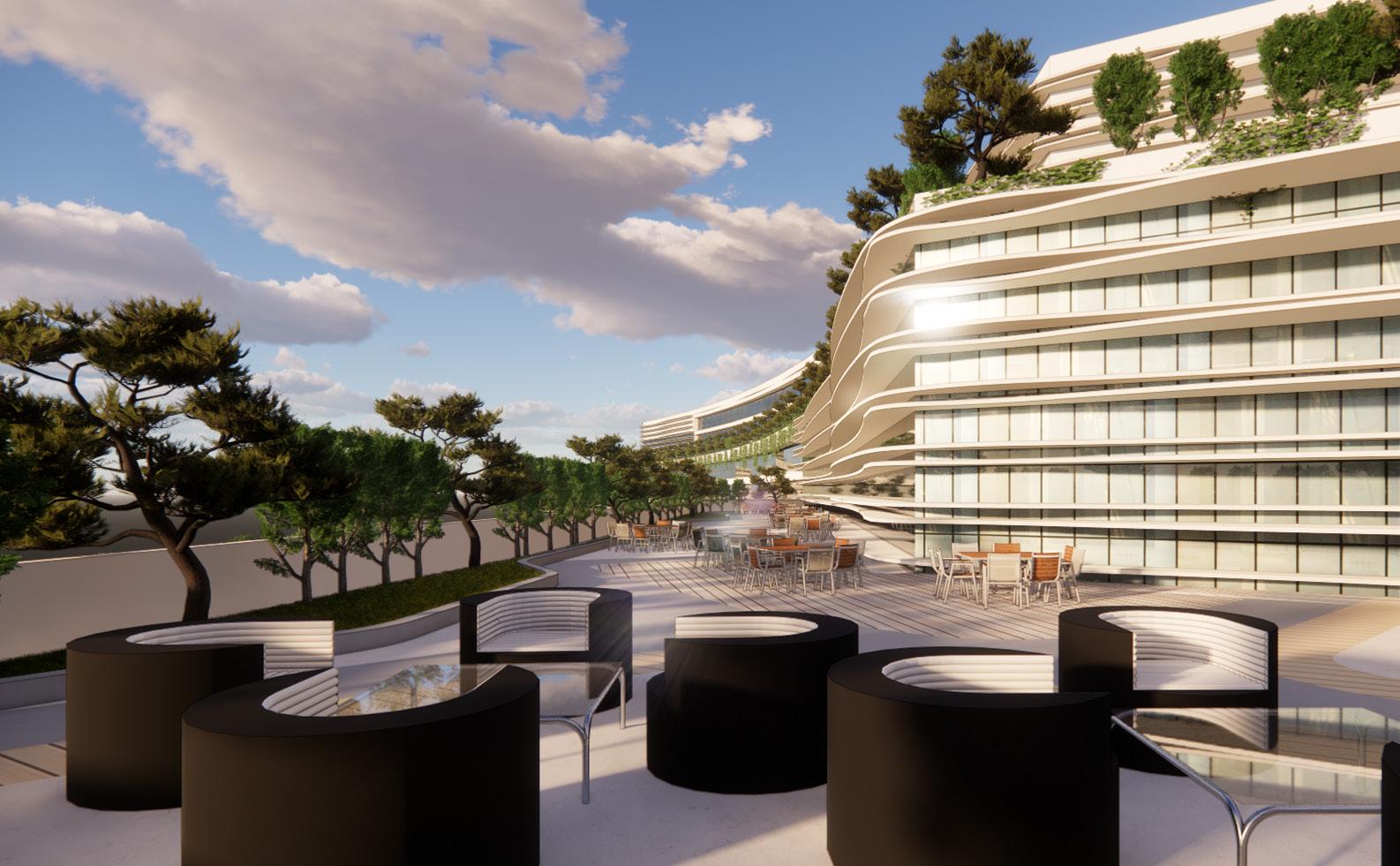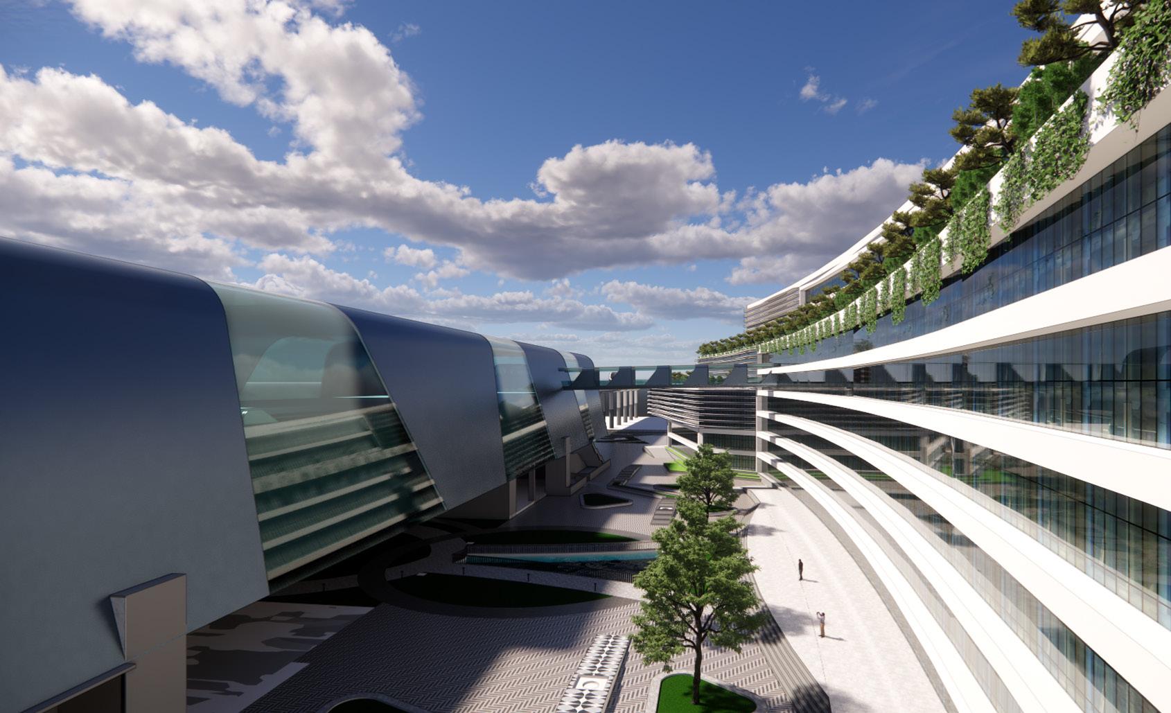 Exclusive drop off lane for hotel and office users has been provided. Security check point is provided to restrict the entry of mall users to office and hotel and it also restricts the entry to residential zone. Traffic calming is ensured. Seamless movement with less chaos and congestion is achieved by promoting non - motorised transportations. Roads are planned in such a way that no much hindrance is experienced by the pedestrians and bicycle users.