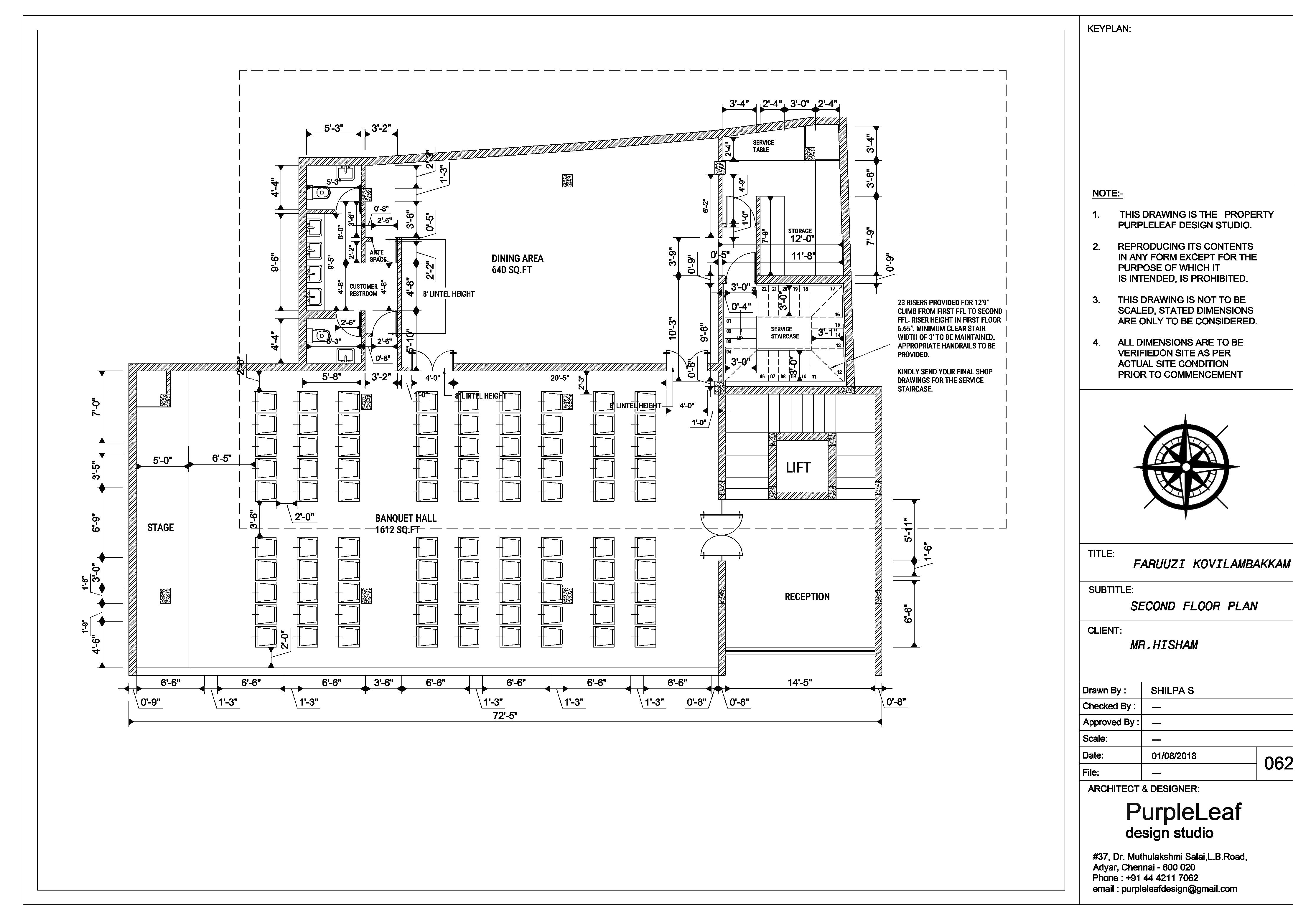 The aim of this project is to plan and design the interior of the restaurant in such a way that the dining space gets ample amount of light and good view for the occupants. It is also important to focus on the arrangement of furnitures such that maximum number of seats are designed without compromising the architectural standards. The circulation between public and private area has to be ensured. It is a multi level restaurant where banquet hall to be provided.