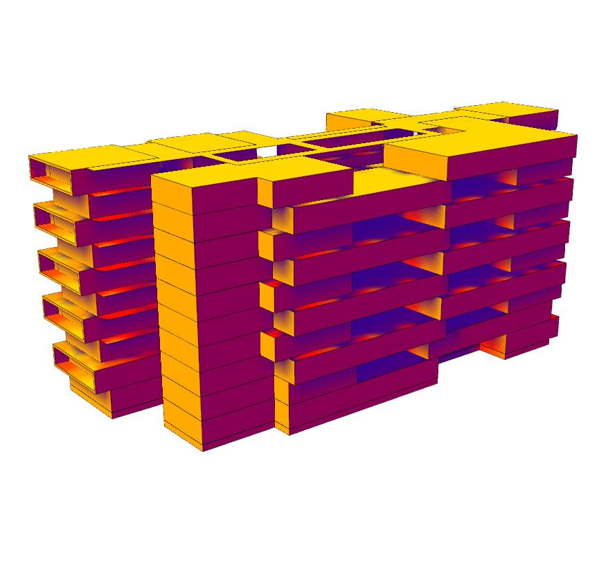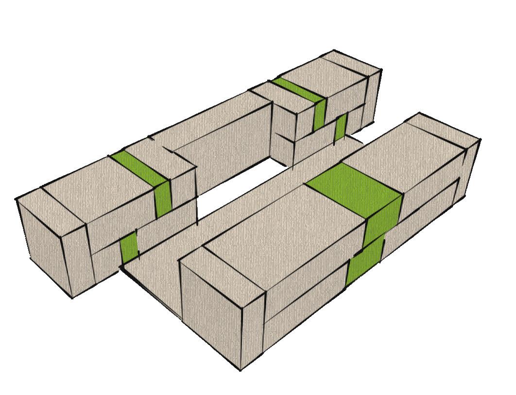 The blocks are staggered in such a way that each studio gets ample amount of daylight on all sides & to ensure that the form facilitates cross ventilation in each studio unit.