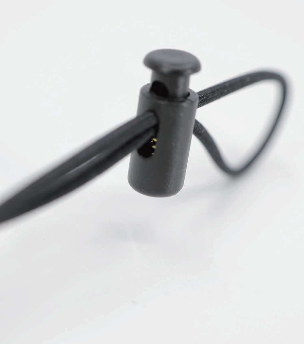 Material : TPU Material : TPU SCREW TO ADJUST SCL92 Cord lock MOJ52H Cord lock Elastic cord : 2.5mm Material : TPU 03. MOJ series Sewing type MOJ cord lock series : Patented NK100 Cord lock TWIST TO ADJUST Material : TPU HARD TRIMS 18