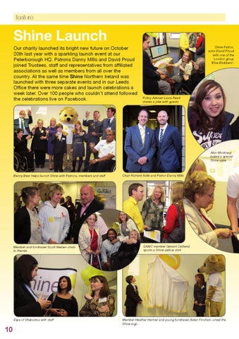 Shine Launch Our charity launched its bright new future on October 20th last year with a sparkling launch event at our Peterborough HQ. Patrons Danny MIlls and David Proud joined Trustees, staff and representatives from affiliated associations as well as members from all over the country. At the same time Shine Northern Ireland was launched with three separate events and in our Leeds Office there were more cakes and launch celebrations a week later. Over 100 people who couldn’t attend followed the celebrations live on Facebook.