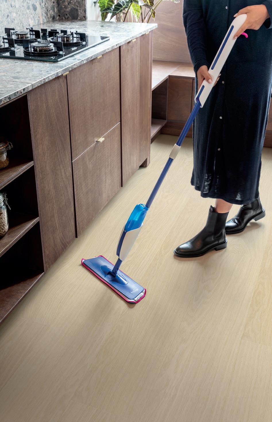 need any aggressive cleaning products to keep your vinyl flooring clean. All you need is lukewarm water and, if necessary, some Quick-Step Floor cleaner product.
