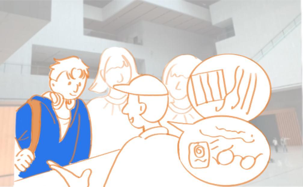 Find a place to rest and queue at the interactive device