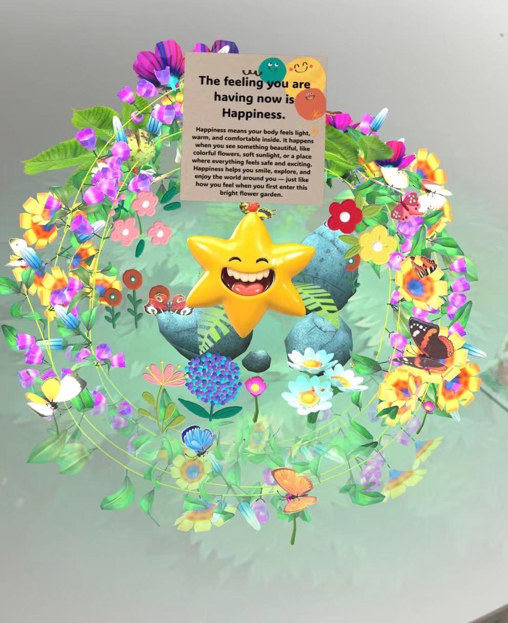 With the core of " ", abstract emotions that are difficult for 3-10year old children to understand are transformed into a playable and interactive immersive experience in the botanical garden. Through the multi-layered carrier of "threedimensional scene+emotion card/expression+AR interaction+magnetic device", children can complete the cognitive loop of "perceiving environment → triggering emotions → recognizing emotions" in the natural process of "strolling in the botanical garden", turning "happiness, anger, and dislike" from vague feelings into tangible experiences that can be seen, touched, and named.