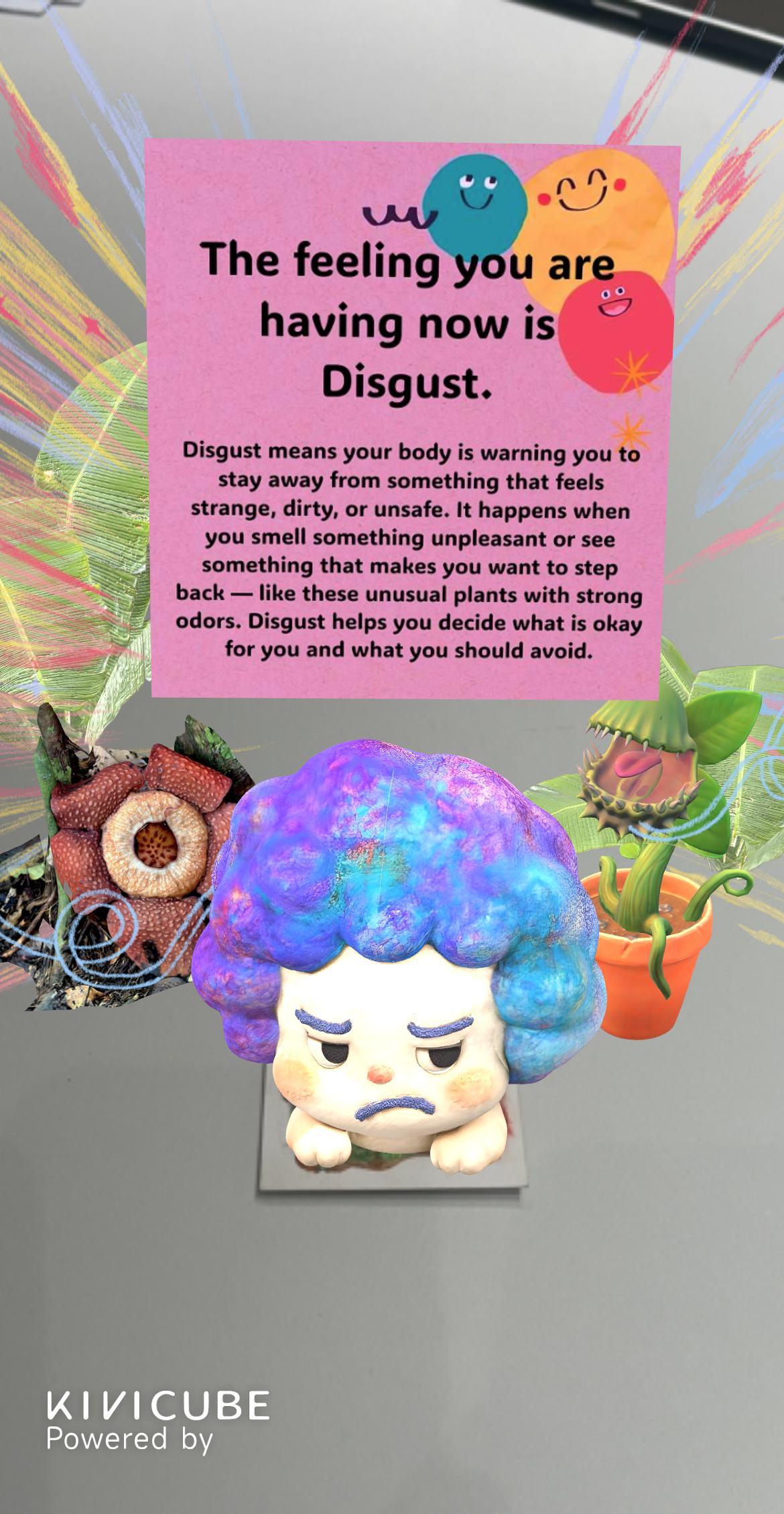 Arriving at the Stinky Botanical Garden, it triggers thinking about how you would feel. Scanning the emotion card can obtain the