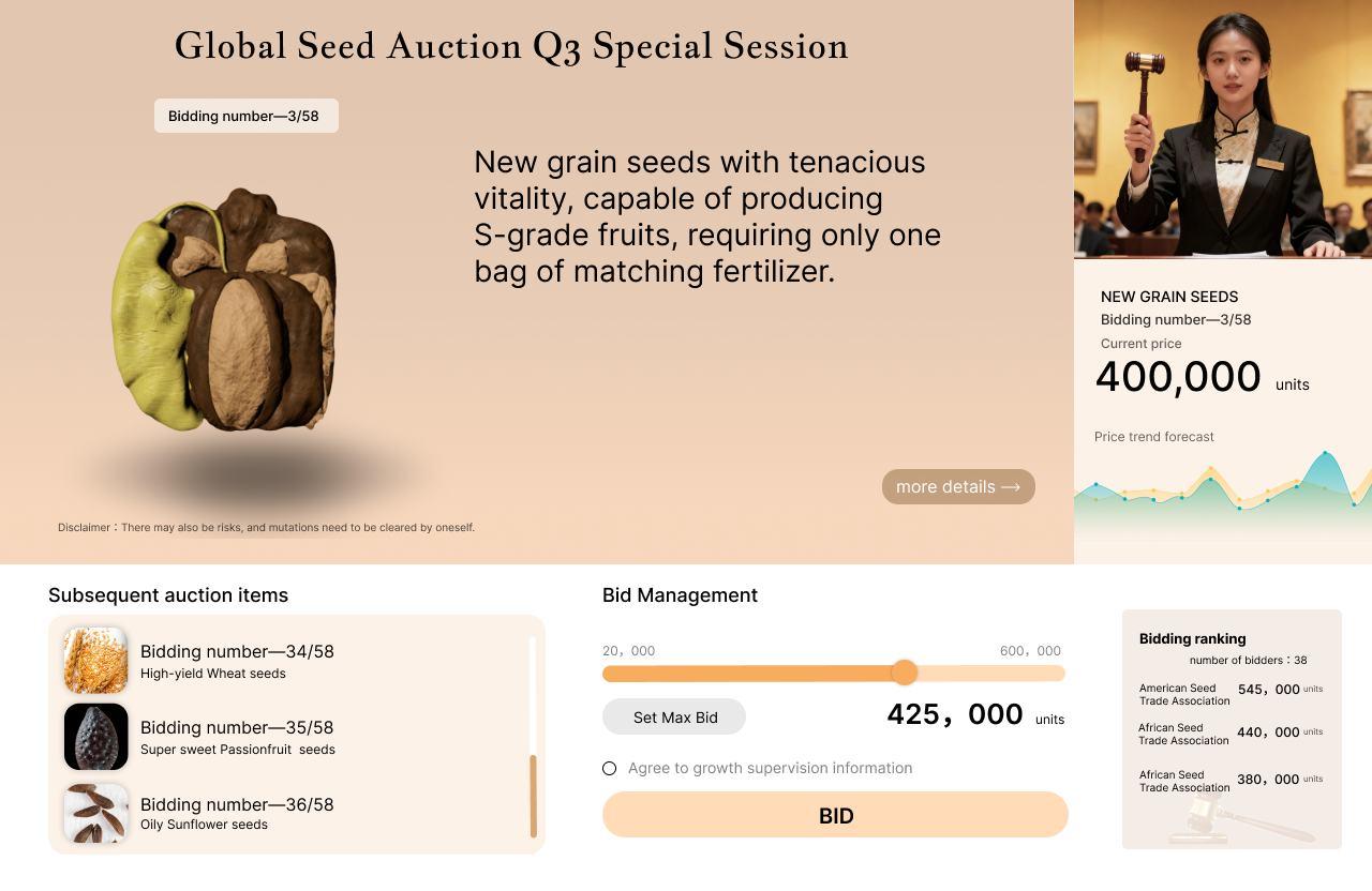 Price increase range: A grade germplasm has a minimum price increase of 5%, B/C grade has a minimum price increase of 3% and supports onetime capped bidding (requiring a 20% deposit to be paid in advance).