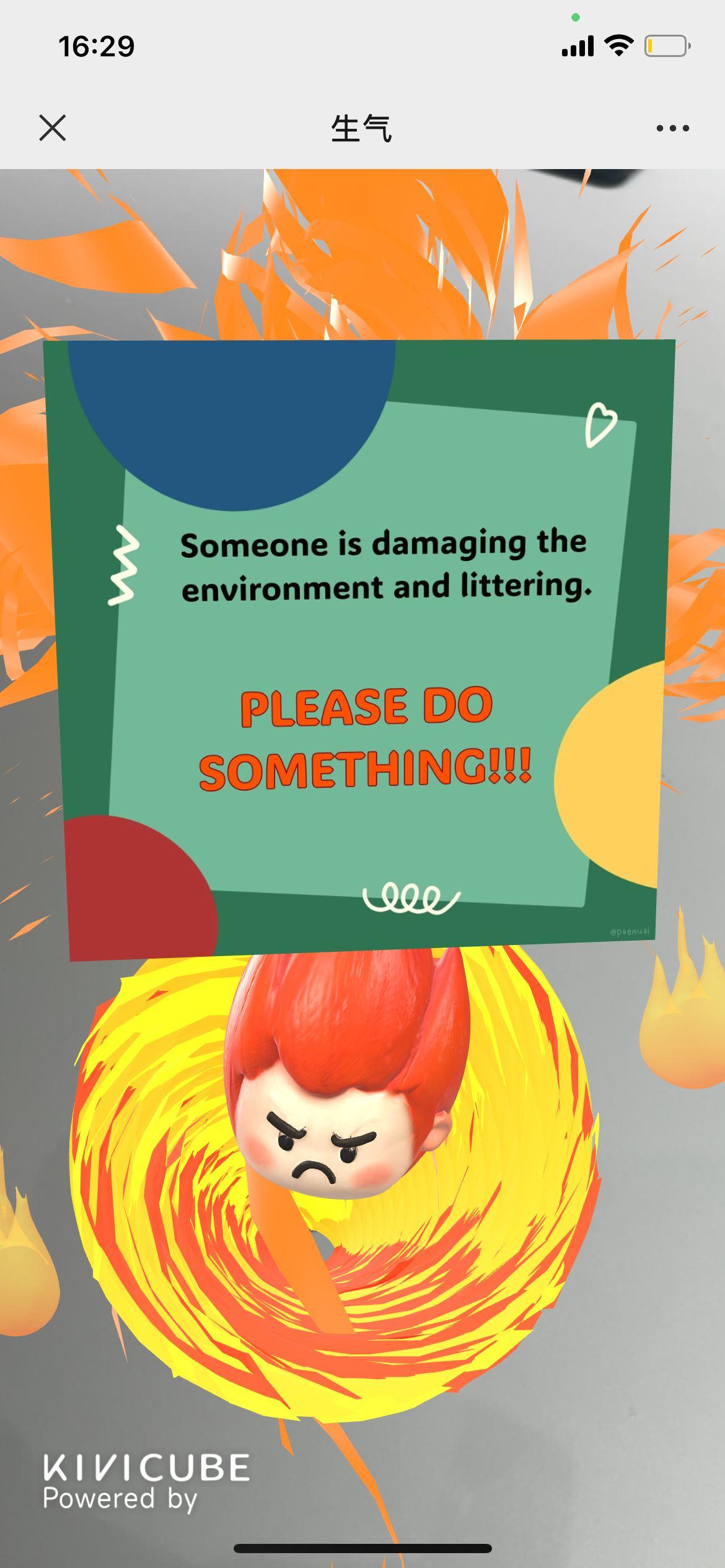 The aquatic botanical garden magnetic suction garbage creates an uncomfortable scene. Scanning the emotion card AR shows that this is anger, and