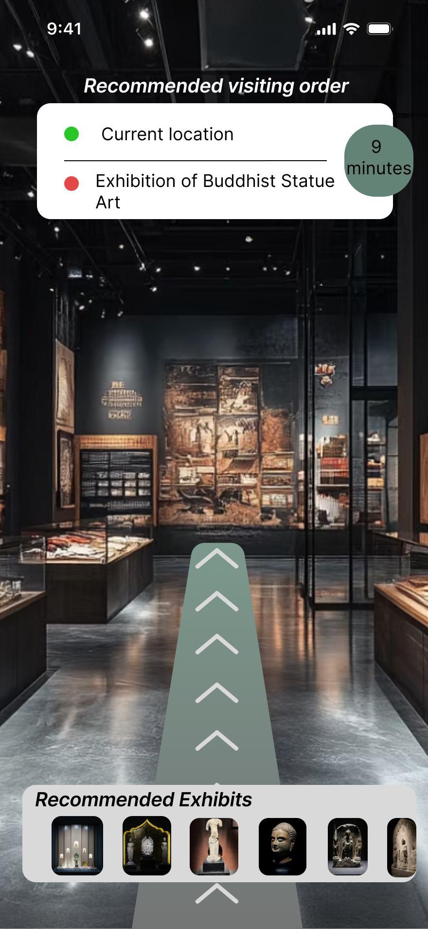Interactive Map:A list of exhibits, galleries, and key points of interest (like cafés, restrooms, or the gift shop) is displayed. One-Tap Navigation:Once you tap your destination, the magic begins.