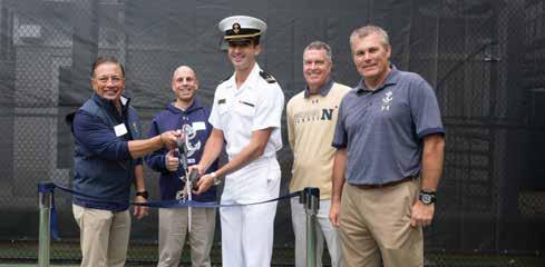 This state-of the-art facility houses coaches’ offices, a team Wardroom, a nutrition center, a stringing room, and recognitions and dedications for Navy Men’s Tennis players. This project would not have been possible without the help of all supporters, including leadership donors Michael Spanos ‘87 and RADM A.B. Cruz ‘80.