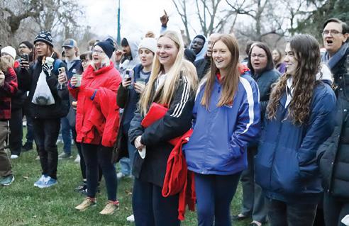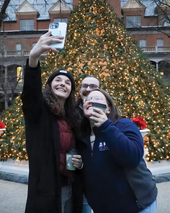 On December 4, President Patterson and First Lady Colleen welcomed the campus community to the annual Old Main Fountain Tree Lighting. The event featured the taking of the annual holiday card photo, tours of the Martin House holiday decorations, and the Old Main Fountain Tree Lighting. Students also enjoy games, giveaways, cookies, and hot chocolate!
