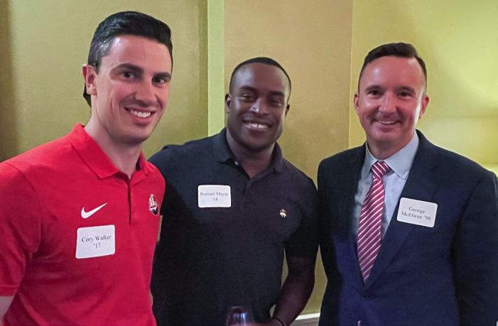 ⓫ Alumni Board directors Johanna, Paula, and Aven taking a spin to visit teams on the course; ⓬ SEK CPA Team of Steve Lubart ’96, Denver Martin ’08, Tyler Clugston ’09, and Evan Wabrick ’12-’13m, alumni association board director. ⓭-⓮ The Alumni Office hosted a Lunch and Learn in Camp Hill with President Charles Patterson in August, providing an opportunity for alumni to hear about recent initiatives on campus and answer questions.