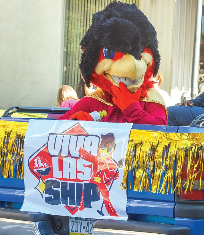 On October 21, we recognized seven Athletic Hall of Fame inductees (see page 14) and that evening honored ten alumni with awards (see page 30). Saturday, the Homecoming Parade made an exciting return after 12 years and it was a huge hit on campus and downtown. The SU Marching band led the way, followed by all the glitz and glamour of Vegas with floats designed by student groups, athletic teams, and departments. Even Big Red showed up dressed like Elvis!