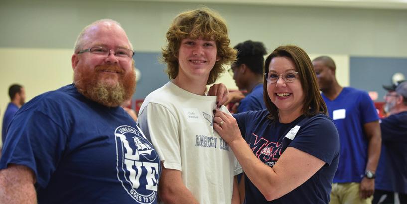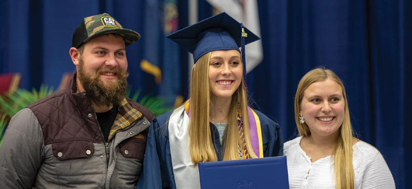 ⓯-⓲ Over 200 attended our annual Legacy Pinning during Parents and Family Day in September. Alumni pinned 49 students as legacy students. Pictured ⓯ Sonya Stokes ‘03m pinning daughter Trinitee; ⓰ John ’97 and Crystal (Schweighofer) Patterson ’97 pinning son, Cody; ⓱ Scott ’00 and Paula (Varner) Ochs ’03 with daughter Kyleigh; and, ⓲ Lorraine Ferrell ’00-‘07m with daughter Lauren.