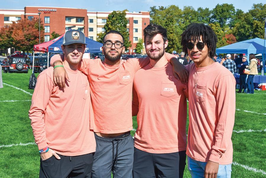 •• Twenty-nine golf teams converged at Iron Valley Golf Course in Lebanon on September 23 for a beautiful but windy day of golf. With the support of our golfers and sponsors, we raised over $11,000 for the Shippensburg University Alumni Association and the Alumni Legacy Scholarship. SAVE the DATE for 2023, Friday, September 22. Pictured ➐ owners of Iron Valley and Platinum and Gold sponsor, Byler Holdings team of Jonathan ’97 and Kathy ’97 Byler with Brian Dallas ’96 and Dan Kilkeary; ➑ Signature Finishes, bronze sponsor team of Jared and Carol Verish Houck ’99 and Bryan Lowe ’08-‘17m, bronze sponsor university trustee and Riley Brown ‘22; ➒ The alumni office staff of Lori Smith ’95-‘07m, director and Steph Swanger with alumni association president Paula Alcock ’92 and alumni board directors Johanna Jones ’92-‘00m and Aven Bittinger ’20-‘21m working the golf outing; ➓ The Fulton Bank team of Anthony Leidy, Cedric Adams ‘20, James Spanos ‘15, and Mike Douglas ‘14;