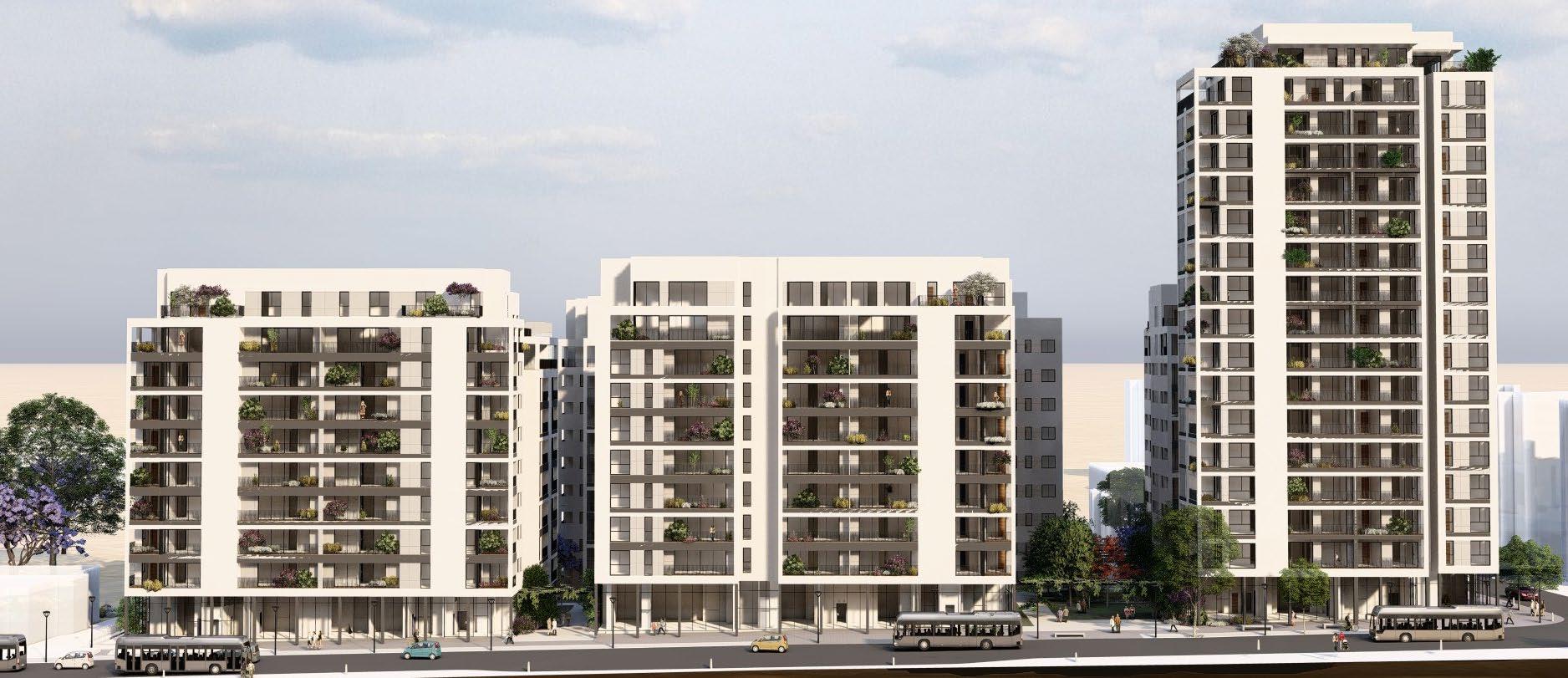 This urban renewal project is a key development in the revitalization of the Yad Elihu neighborhood, involving the planning of seven new buildings (420 units) above three parking floors. These new buildings will replace four outdated residential buildings (120 units) that will be demolished. The aim of this renewal is to attract new tenants and promote growth and development in the neighborhood by blending new urban structures with the existing fabric. The project includes six ten-story buildings and one 18-story high-rise. It features a variety of residential units, including onebedroom, two-bedroom, three-bedroom apartments, penthouses, and duplexes.