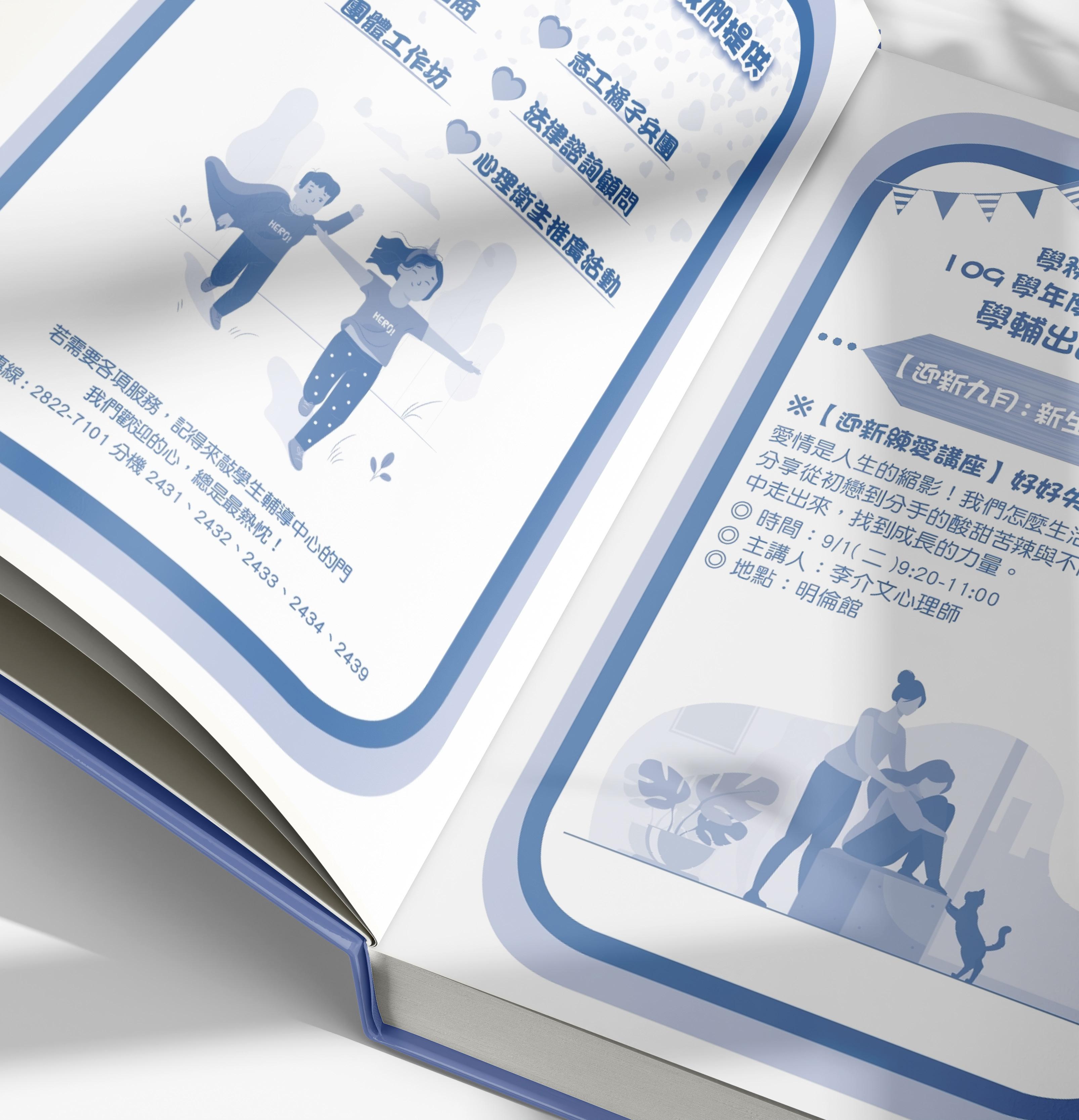 在印刷公司的兩年期間,經常接觸大專 院校學輔中心文宣之排版與印刷事務。 也因此對心衛文宣的風格、需求與製作 流程更加熟悉。