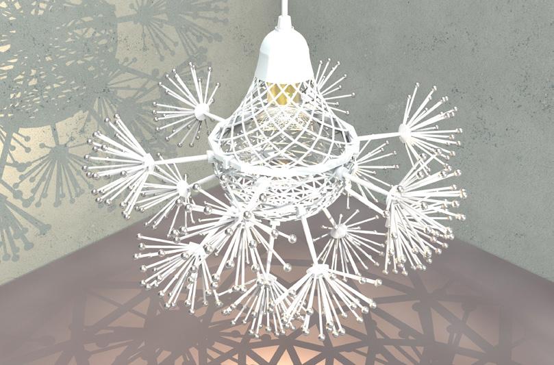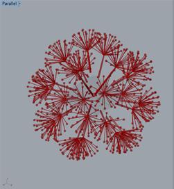 The concept: This derives from the dandelion, a common flower. Many small blooms are arranged into a composite flower head, which looks like white feathers around a central core. I will deconstruct the plant’s structure and create a lampshade design, by manipulating the data structure of the model.