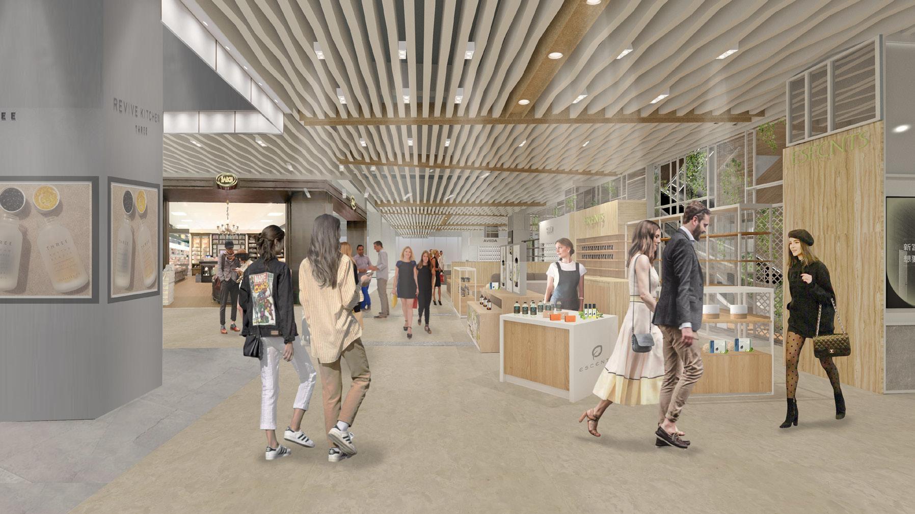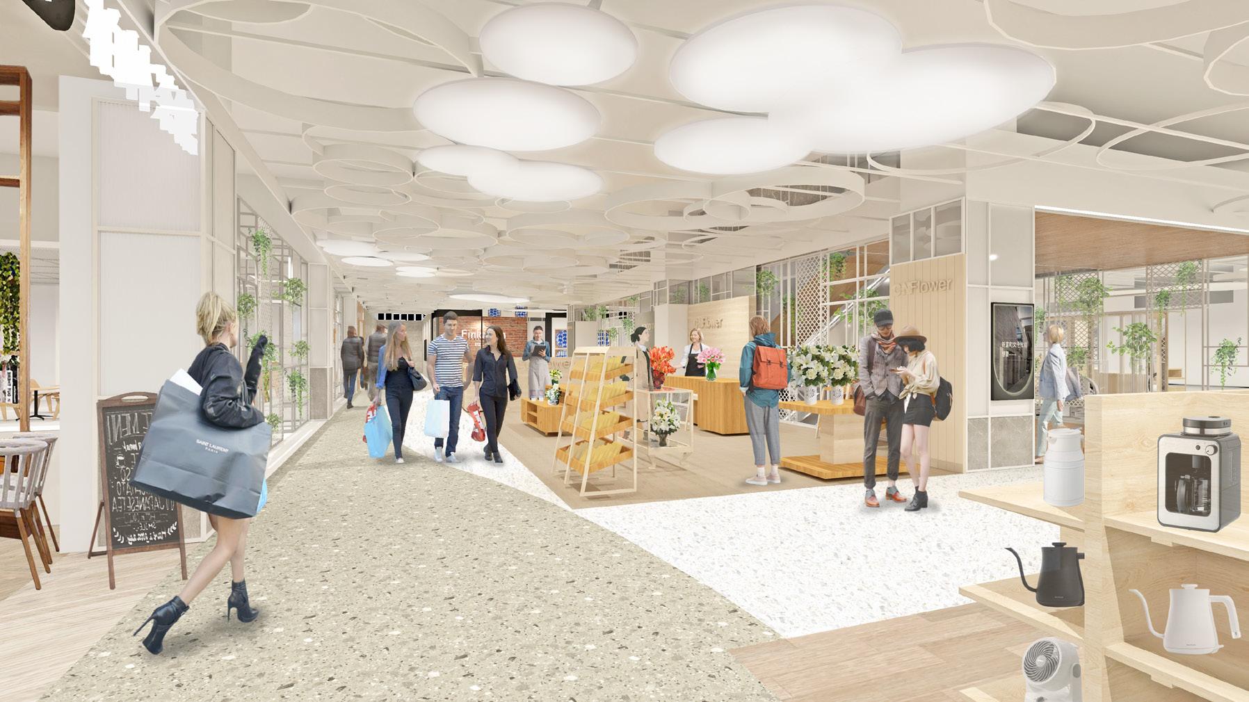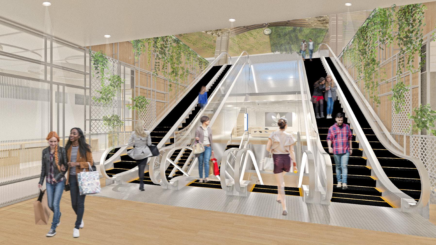 Vertical circulation: Primarily, the escalator is responsible for circulating people. A green wall, designed on both sides of the escalator, provides the beneficial effects of creating a better shopping experience for people, enhancing their sense of well-being and triggering positive emotions.