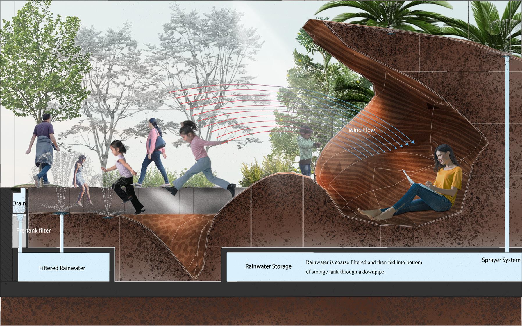 The design is organized based on an analysis of pools typology. Such urban pools not only provides entertainment for people but are also particularly beneficial for citizens to refresh during a heat wave.