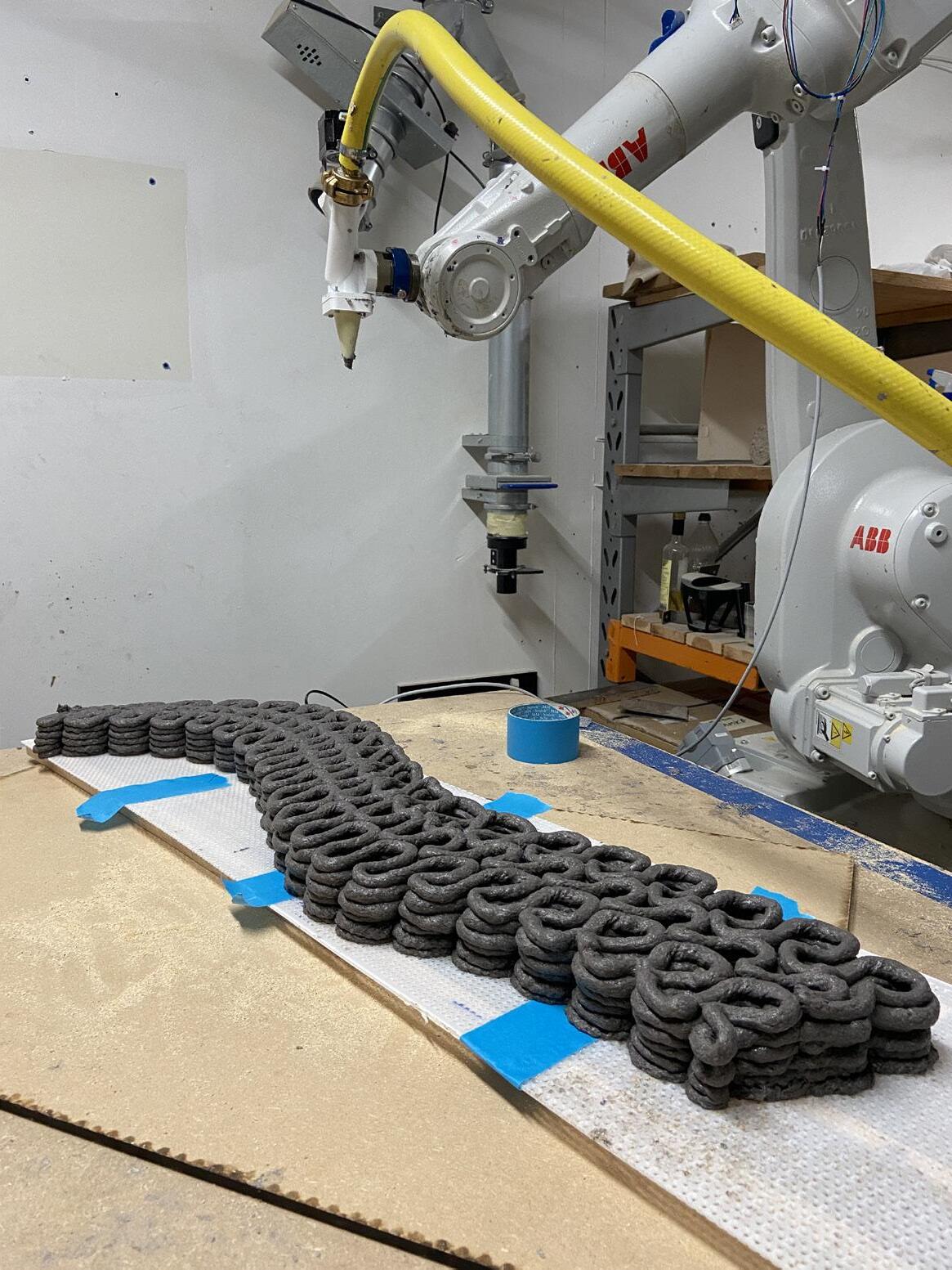 Description: This workshop aims to conduct a comprehensive parametric design investigation, driven by 3D printing parameters related to overhang control, nozzle size design and layer height control. The results revealed that the robotic arms allowed more control and precision during fabrication, thus giving the designers the opportunity to explore geometric possibilities.