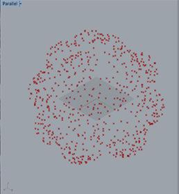 Modeling: The first step is to build a sphere surface then divide it into several smaller surfaces. Establishing the normal vector direction is important. This is found in each surface, allowing flower structures to grow in multiple directions.