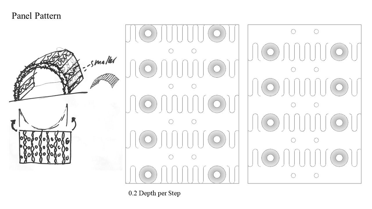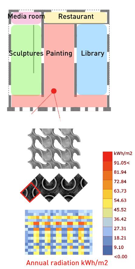 ● Digital design - Knowledge of parametric modelling tools, such as Grasshopper, is a key skill for successful parametric design. In this case, Grasshopper was used for designing and adjusting complex shapes through certain parameters. The