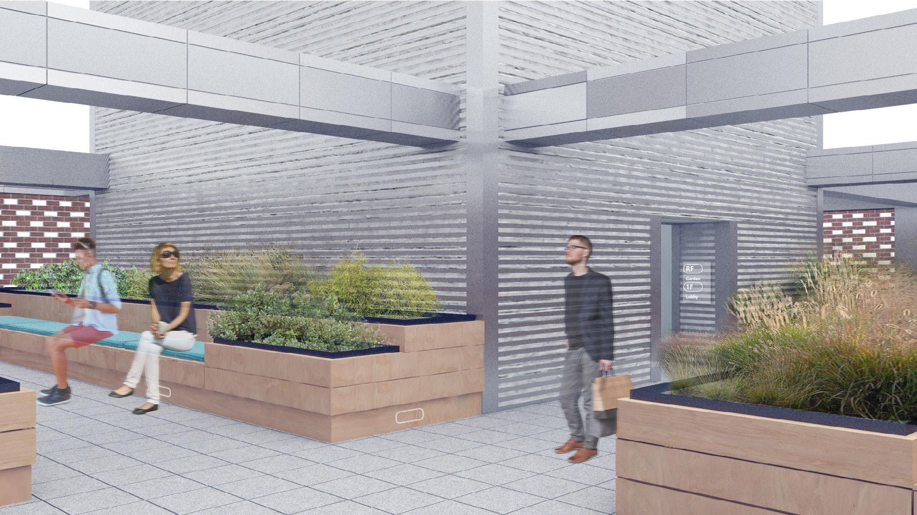 façade will be created by designing the windows two-story units, stacked in a staggered pattern.