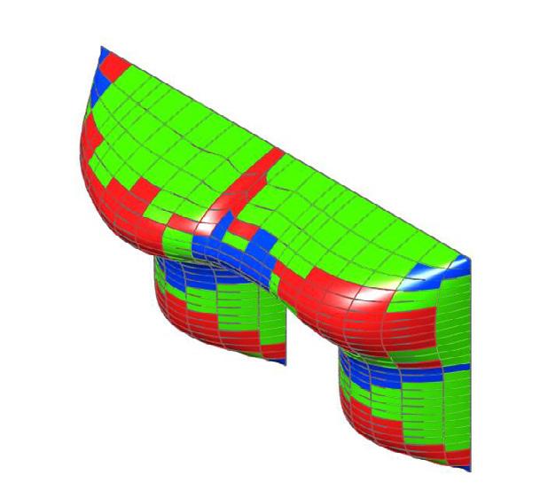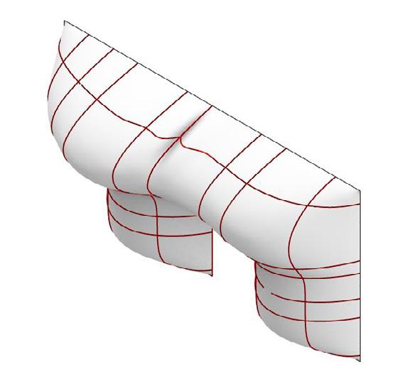 The second step: A subdivision scheme is applied. The UV curves are extracted as the model skeleton, which is used to split the surface into several segmentations.