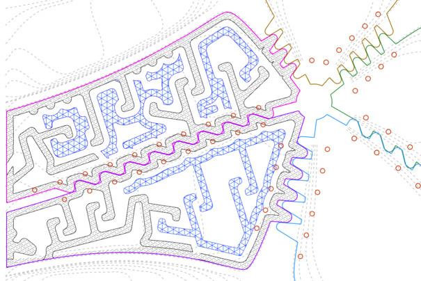 ● Toolpath generation - The material extrusion height was affected by the speed of the robot. The "Contour" comment was used for creating the elevation contours that were exported to the robot as a printing toolpath.