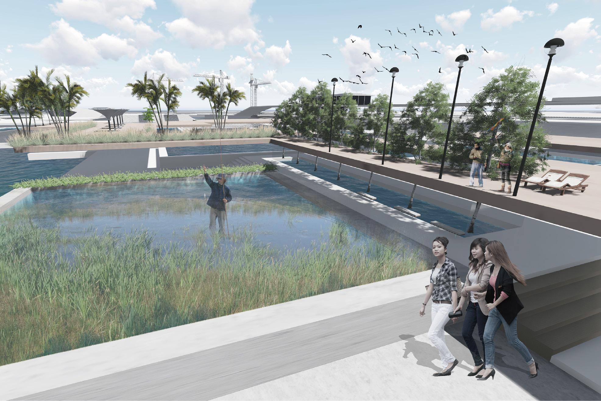 The urban heat island effect poses a considerable environmental problem in many cities, with daytime temperatures in urban areas being higher than those in suburban areas, resulting in discomfort and the spread of heat-related illnesses. To mitigate this, urban water body design should be considered an important strategy, especially in the summertime. Daytime temperatures in Taiwan may reach as high as 38℃, and citizens usually swim on a hot day. Taiwan is surrounded by the sea, and hence, swimming is compulsory as a part of the curriculum from elementary through senior high school. Hence, the education system and each Taiwanese person views swimming as a necessary and basic skill.