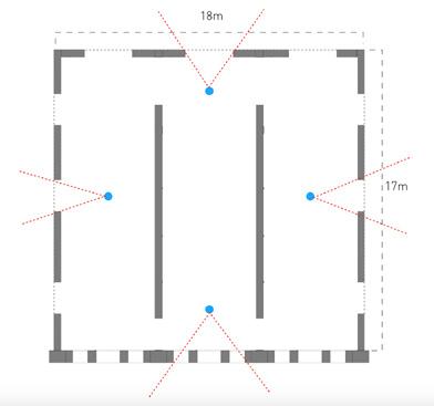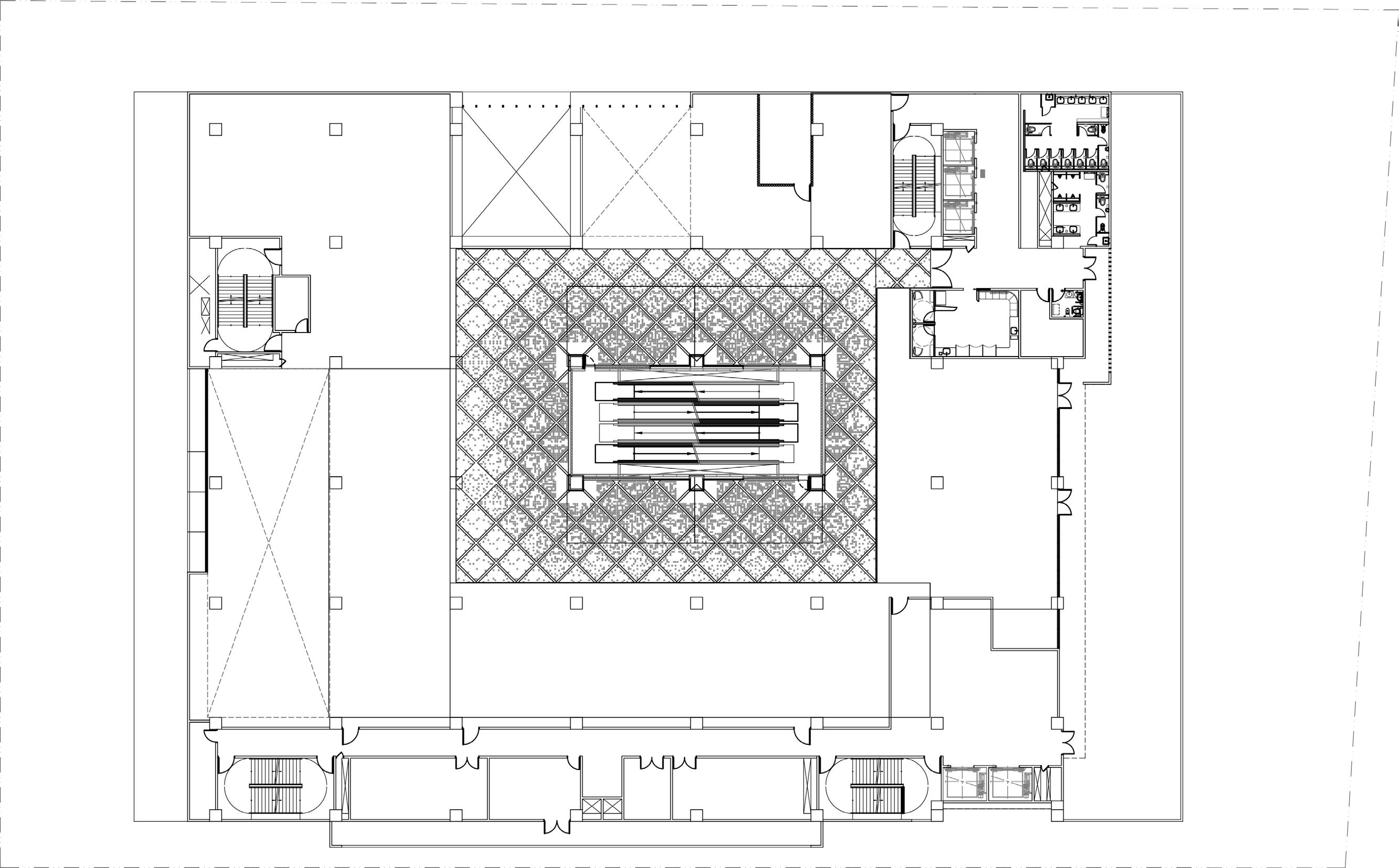 Third floor: The design concept has been extracted from the natural environment, with people walking in the forest and sunshine filtering through the leaves. The perforated metal plates are folded into pyramids that are hung from the ceiling. The spotlights placed in the holes of the metal plates represent the sunlight streaming through.