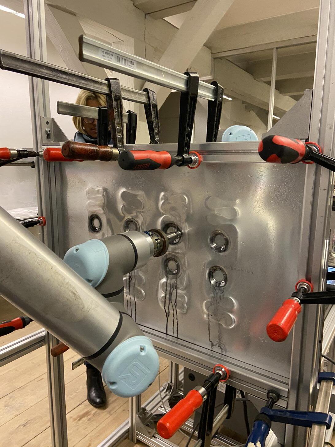 Description: The workshop takes a material and structural point of departure in Robotic Incremental Sheet Forming (RISF). RISF is a fabrication method for imparting 3D form onto initially flat thin metal sheets. During this fabrication process, a ballhead tool is moved over the surface of the metal sheet, causing a progression of localised plastic deformation. Architecturally, RISF is interesting because it bypasses the need for costly and complex molds, instead directly machining finished pieces of metal. This makes RISF particularly well suited
