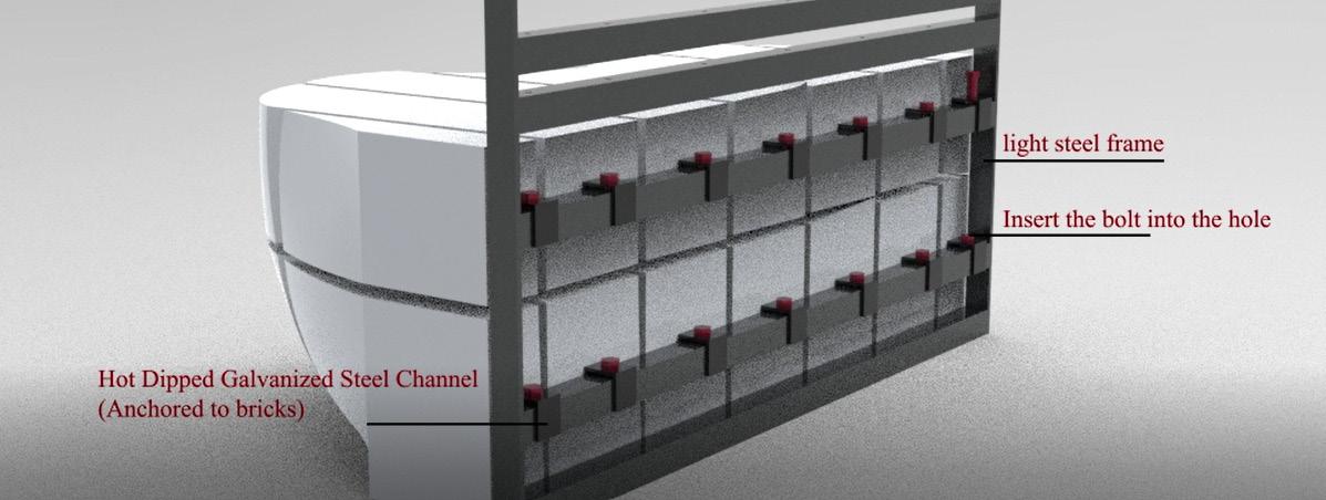 path for tourists to walk down the building. The brick structure is still fragile, necessitating the use of lightweight materials.